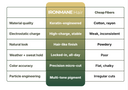 - High structural compatibility with human hair allows fibers to blend seamlessly without looking chalky or powdery.